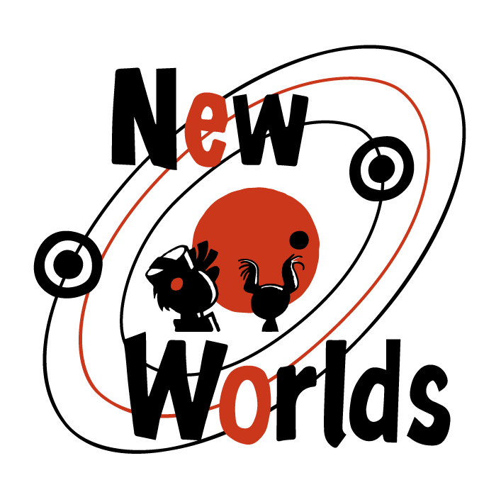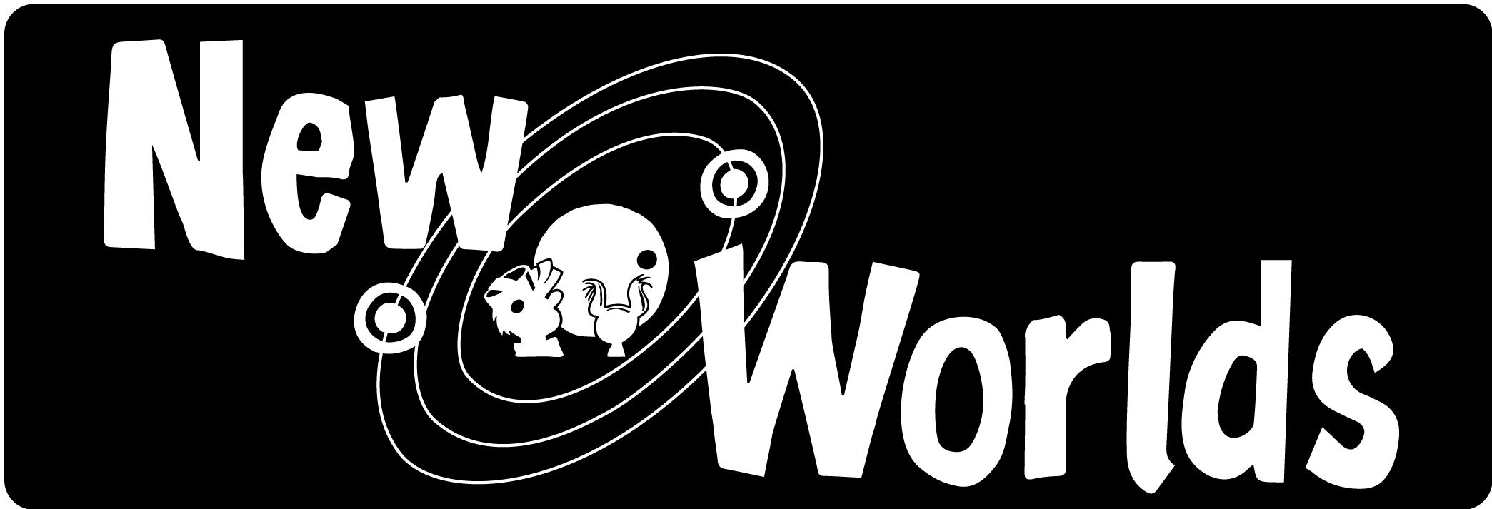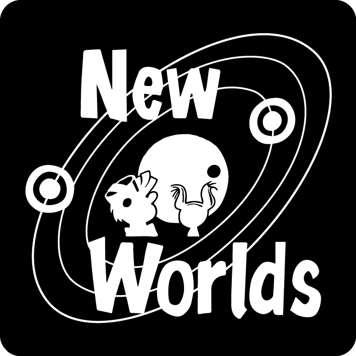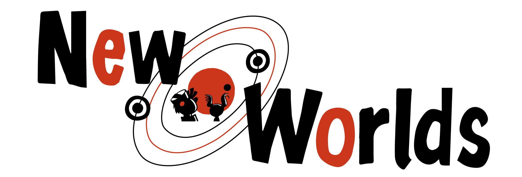 New Worlds has a new graphics logo especially designed for us by JY Duhoo – a talented artist from the SPIROU magazine. The graphics logo comes in 2 flavors, either as a color picture on a bright background or as a white shadow on a dark background. It also comes in 2 setups, either as a square app-like icon or as a horizontal banner.